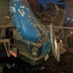 A força das batidas resultou na ejeção de ocupantes do guincho e deixou os veículos sobrepostos na pista — Foto:…