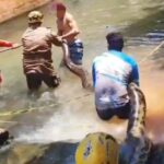 Animal foi encontrado sob estrutura de concreto usada por banhistas; resgate exigiu ferramentas especiais e terminou com a soltura segura…