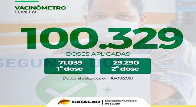 Vacinômetro| Mais de 100 mil doses da vacina contra a covid-19 já foram aplicadas em Catalão