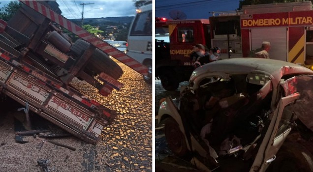 Um caminhão desgovernado atingiu carros, matou uma pessoa e deixou quatro feridas, em Pirenópolis, no centro de Goiás. Imagens mostram as pessoas correndo pela rua e a carga de feijão que estava na carreta espalhada pela pista.