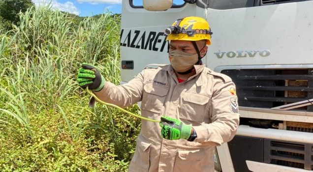 O caso aconteceu na manhã de segunda (7), por volta das 10h, na GO-330. O motorista contou que estava dirigindo quando sentiu a cobra encostar no pé dele. Assustado, o homem parou o caminhão e chamou os bombeiros.