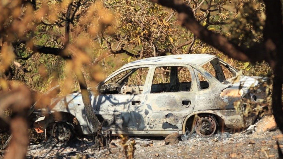 Um carro queimado, um lençol e um serrote achados durante buscas por Lázaro Barbosa, suspeito de cometer uma chacina no DF, são periciados pela Polícia Técnico-Científica (PTC) para identificar vestígio de uso e material genético dele. Lázaro foge da polícia há 15 dias pelas matas de Cocalzinho de Goiás.