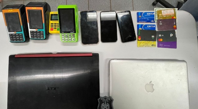 De acordo com a Polícia Civil, o cumprimento dos mandados ocorreu em um apartamento no Bairro Santa Mônica. Os suspeitos não reagiram à abordagem. Com eles foram apreendidos papéis diversos, telefones celulares, um documento falso, dois notebooks, quatro máquinas de cartão e nove cartões bancários.