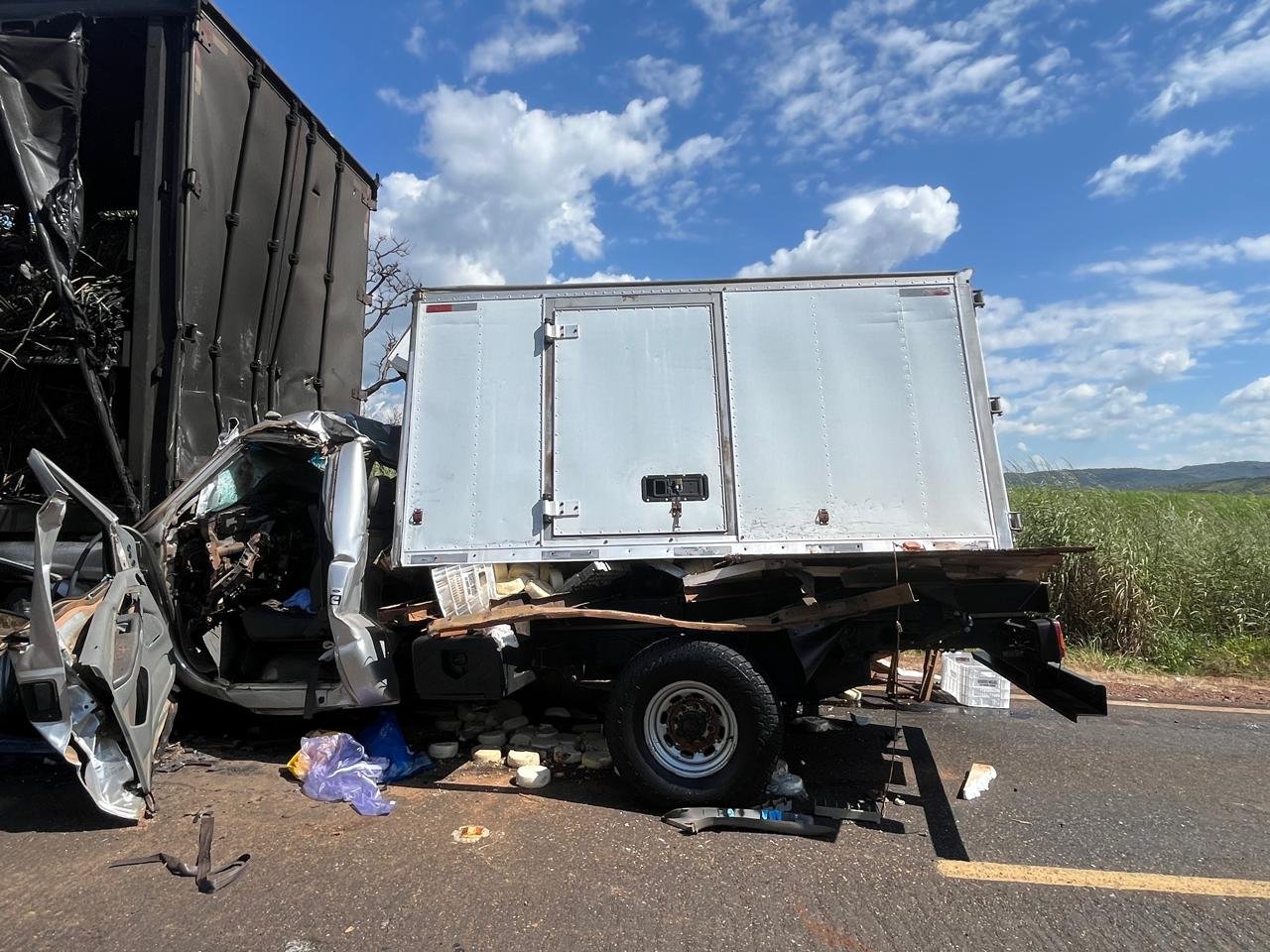 No local, duas vítimas estavam presas dentro do veículo. A equipe teve que cortar o parabrisa do carro para que as vítimas fossem retiradas.