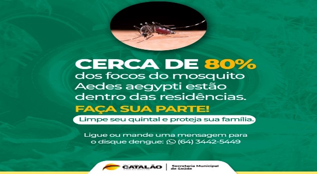 Por isso, a Prefeitura de Catalão, por meio da Secretaria Municipal de Saúde, alerta que é preciso evitar o acúmulo de água parada em ambientes domésticos.
