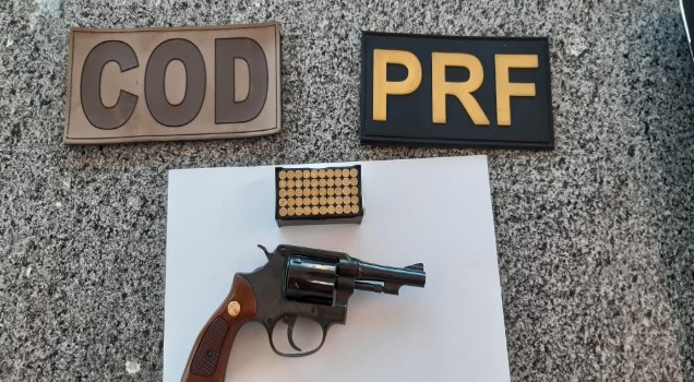Um revólver calibre 22 e 50 munições intactas foram apreendidos pela PRF e PM em operação conjunta.