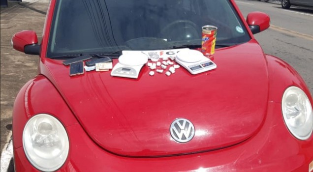 Durante a abordagem a um veículo suspeito, foram apreendidas porções de entorpecente “maconha”, uma balança de precisão e dinheiro, foi ainda constatado que o veículo se tratava de produto de um Furto ocorrido na cidade de Caldas novas.