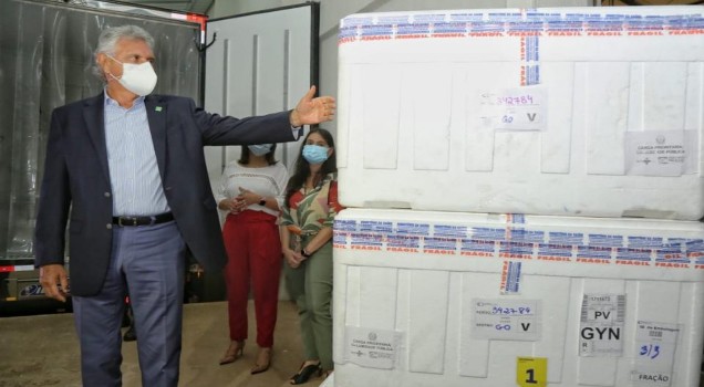O governador Ronaldo Caiado esteve na Central Estadual de Rede de Frio, unidade da Secretaria de Estado da Saúde de Goiás (SES-GO), para receber pessoalmente a segunda remessa. O número de beneficiados com os lotes deve chegar aos 67,9 mil goianos.