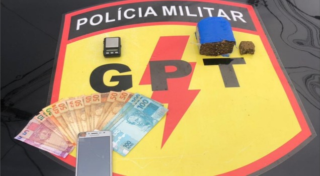 Em uma abordagem a um veículo suspeito, localizaram entorpecente “maconha”, além de uma balança de precisão e dinheiro oriundo da prática delituosa.