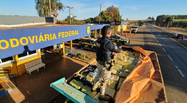 A PRF realizou na madrugada de hoje (22), a apreensão de um caminhão carregado de maconha.