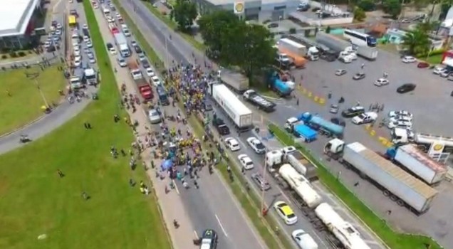 Um grupo de manifestantes interdita, nesta segunda-feira (15), os dois sentidos da BR-153, na altura do Paço Municipal, em Goiânia, e causa um congestionamento de 5 km. O ato acontece após entrar em vigor o decreto que restringiu o funcionamento de atividades não essenciais por mais 14 dias, com o objetivo de conter o avanço da Covid-19 na capital.