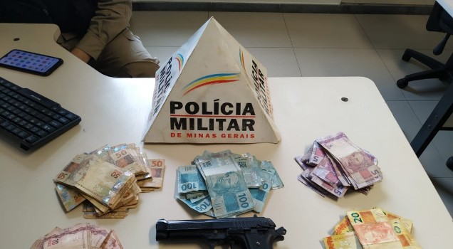 Após diligências, os policiais abordaram o autor na Rua Eurípedes Barsanulfo. Com ele, foram encontrados em uma mochila R$ 14.965 e uma réplica de arma de fogo.