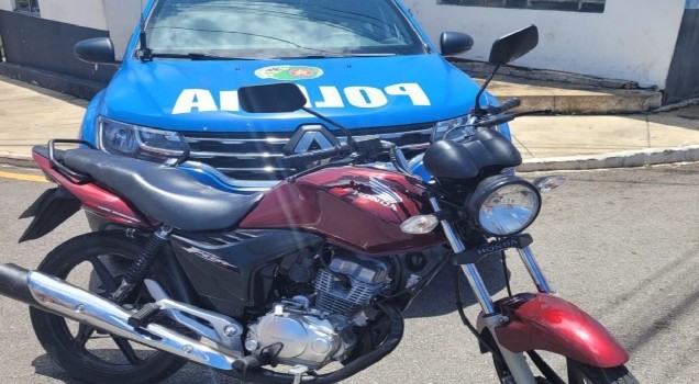 Durante patrulhamento, verificaram uma motocicleta suspeita estacionada e durante a checagem foi constatado ser produto de Furto/Roubo.