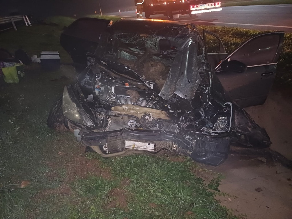 O primeiro acidente foi registrado por volta das 02h00, no km 273 da rodovia, próximo ao acesso norte da cidade de Catalão. A ocorrência envolveu um automóvel Honda/Accord, com placas de São Paulo, cujo condutor perdeu o controle da direção e colidiu contra a defensa metálica que separa as pistas.