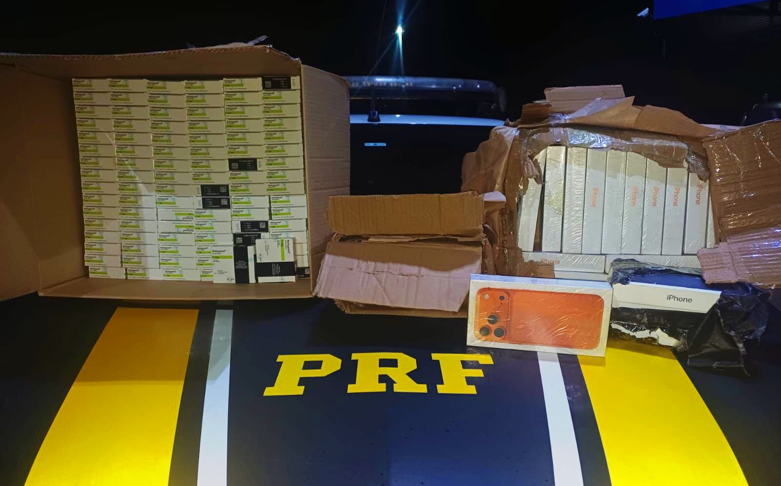Na noite desta quarta-feira (5), a Polícia Rodoviária Federal (PRF) prendeu um homem, motorista de aplicativo, com mandado de prisão em aberto e apreendeu uma grande quantidade de medicamentos controlados e eletrônicos transportados ilegalmente na BR-060, no km 86, em Anápolis (GO).